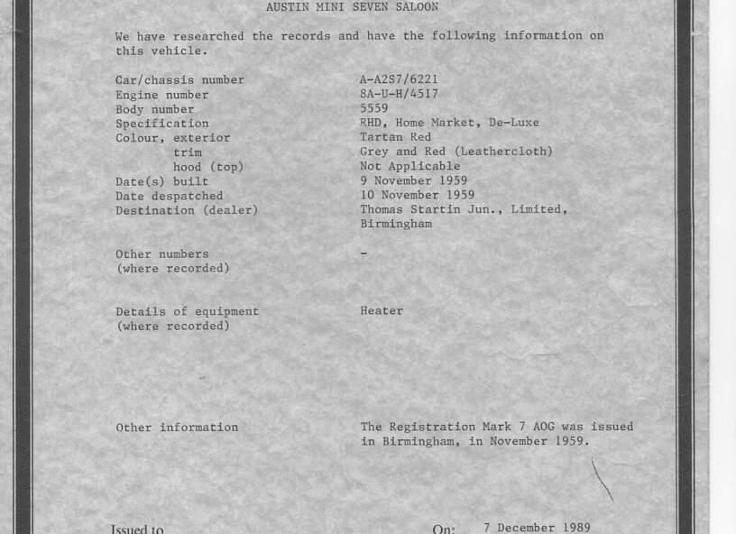 1959 – Austin Seven Mini 0.9 – £16500